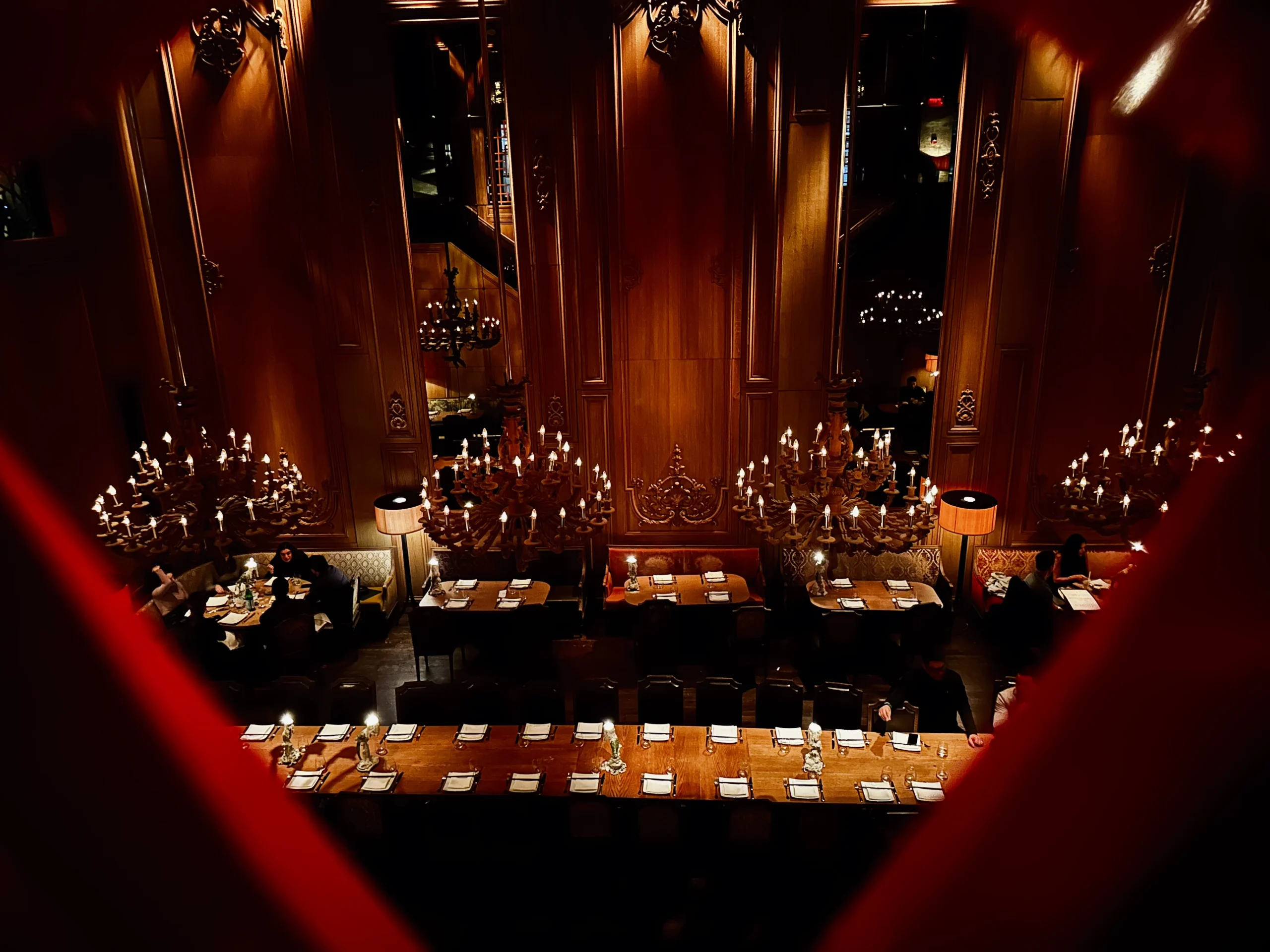 La decoración del local es lujosa y te transporta a un ambiente teatral y misterioso, con una combinación de elementos orientales y occidentales que crean una experiencia única para los comensales.