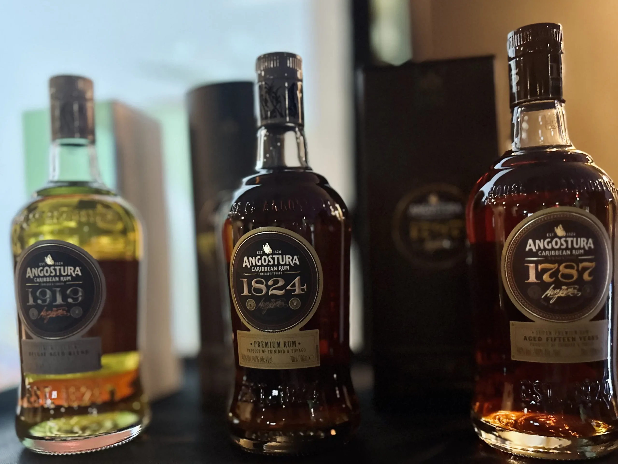 La cata se compone de 3 rones: Angostura 1919 un blend de rones de entre 5 y 14 años, Angostura 1824 un blend de 4 rones envejecidos en barricas carbonizadas de roble americano exbourbon entre 5 y 17 años y Angostura 1787 un blend de rones envejecidos en barricas carbonizadas de roble americano exbourbon durante un mínimo de 15 años.Angostura 1919 Rum, Angostura 1824 Rum y Angostura 1787 Rum