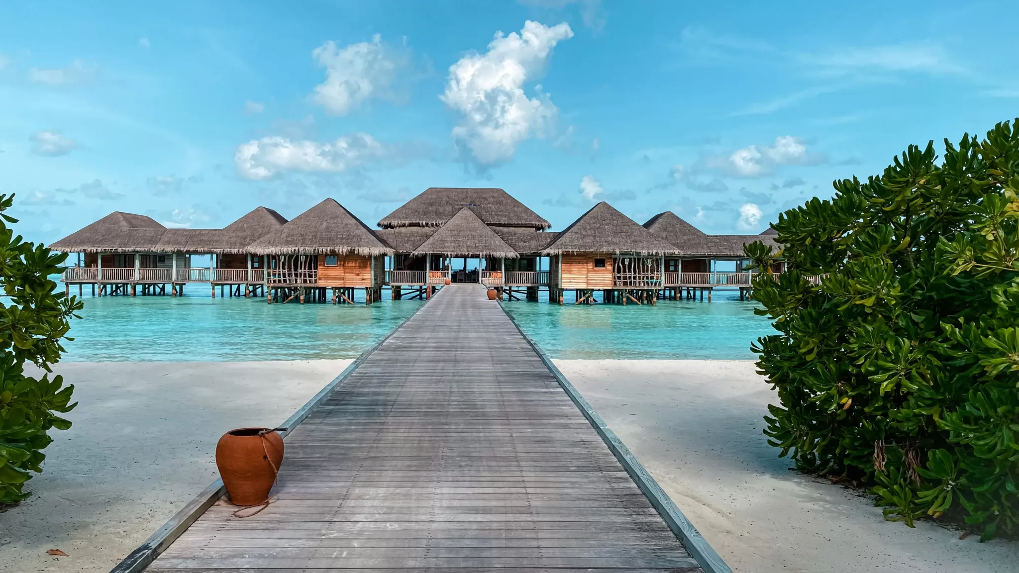 Nada más ser recibidos por los tripulantes de la lancha, que a nuestra disposición pone el hotel para nuestro traslado desde el aeropuerto al paraíso, nos ofrecen una bebida, una toallita refrescante y nos hacen quitar el calzado para guardarlo en una bolsa de tela que lleva grabado el lema del hotel “No shoes, no news”. Esa bolsita permanecerá olvidada durante toda la estancia pues en la isla vamos descalzos en todo momento.