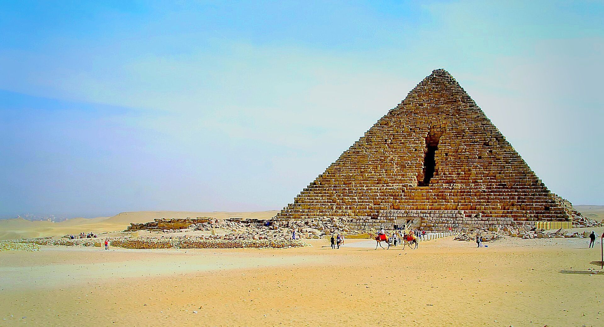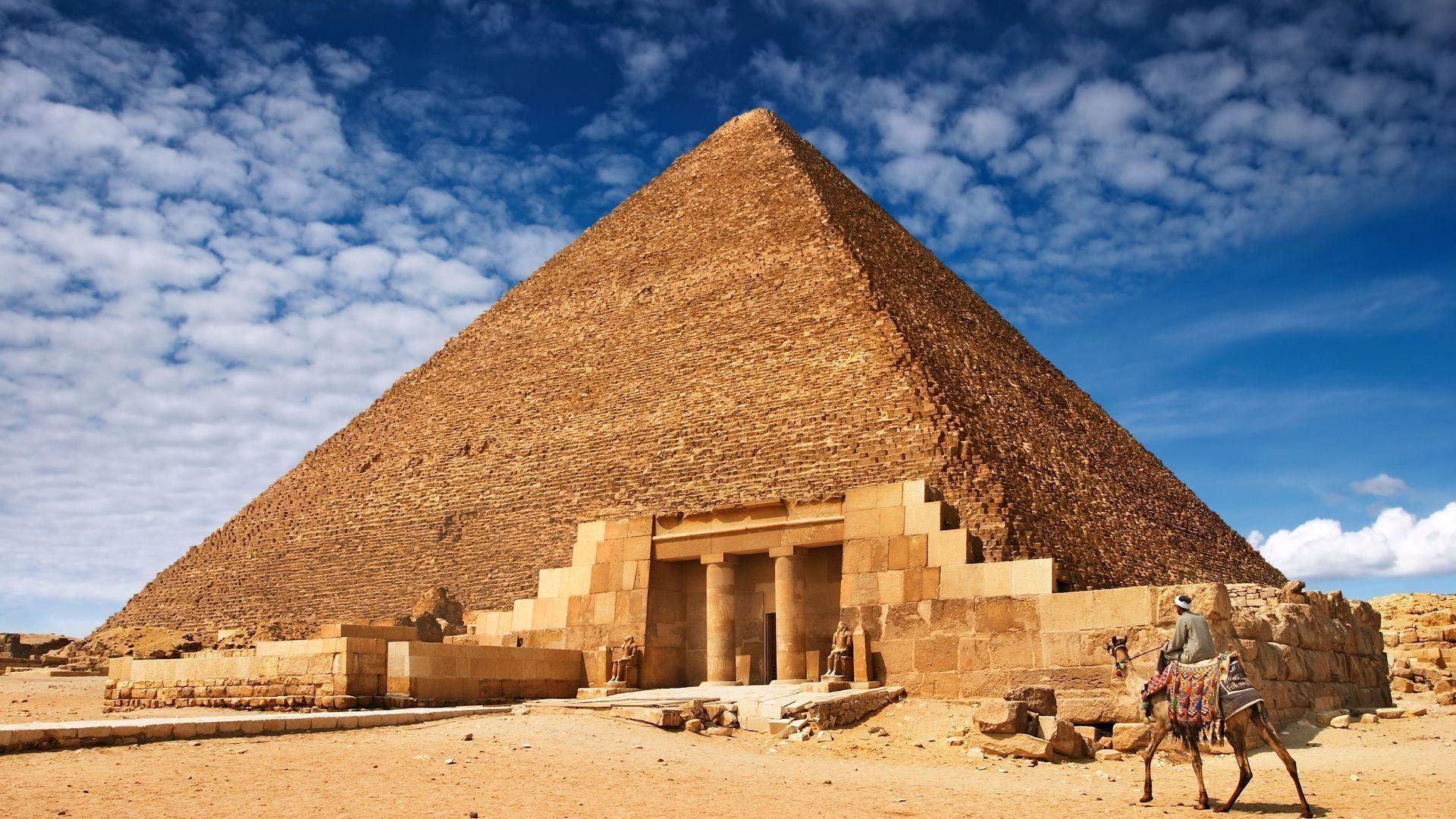 Fue ordenada construir al arquitecto Hemiunu por el faraón Keops (IV Dinastía del Antiguo Egipto). Se estima que finalizaron las obras, 20 años después, alrededor de 2.570 a.C. Durante 3.800 años fue el edificio más alto de la tierra, hasta que en el siglo XIV, fue superado por el chapitel de la Catedral de Lincoln (Inglaterra), y también el más alto construido en piedra, hasta que en el siglo XIX, fue superado por la aguja de la iglesia de San Nikolai (Hamburgo).Es considerada una de las siete maravillas del mundo antiguo. Tiene una altura de 137m y 230m de lado, aunque en realidad en su época era de 146m y 232m respectivamente. Cada una de sus caras triangulares tiene una altura de 186m sobre el plano de inclinación.Se estima que se compone de unos 2,3 millones de bloques de piedra, de unas 2,5 toneladas de media por bloque, aunque hay algunos que llegan a pesar hasta las 60 toneladas.