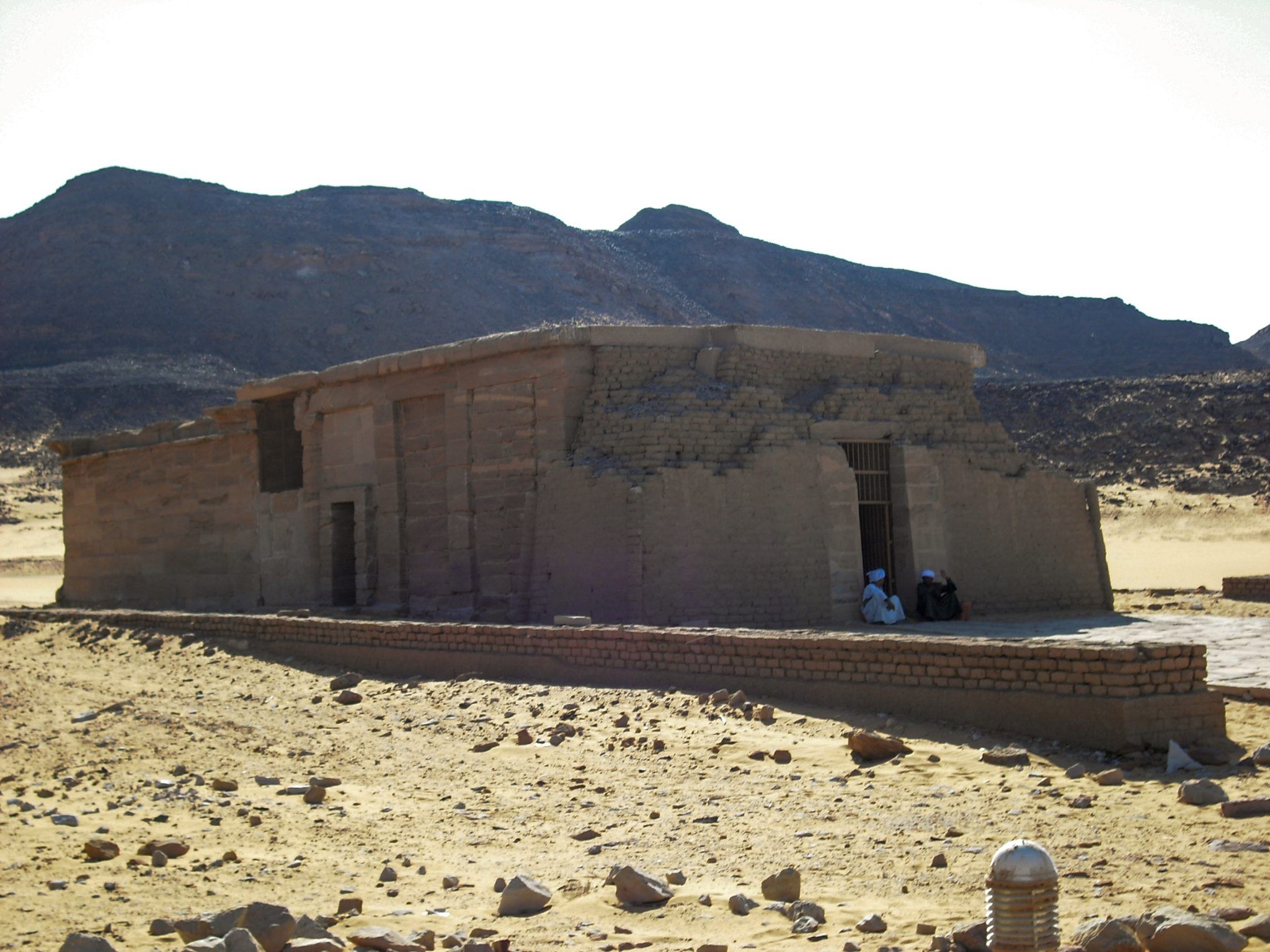 Los colosos fueron tallados, en dirección oriente, sobre dos bloques de cuarcita hecha traer de la «Montaña Roja» (Actual Gebel el-Ahmar, cerca de El Cairo). Su altura es de 16’6m de alto, sin contar con los 2’3m del zócalo.