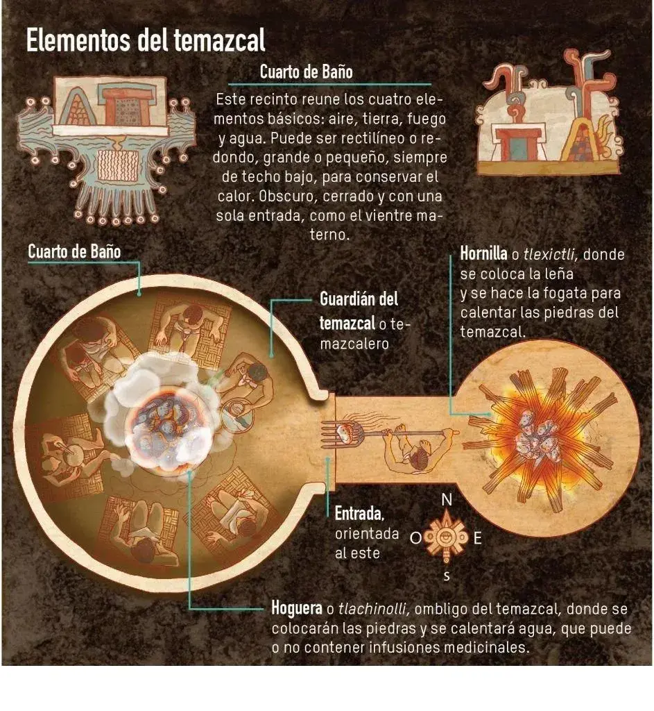El temazcal es un legado cultural de las civilizaciones prehispánicas como los mexicas, mayas, zapotecas y otras culturas indígenas de Mesoamérica. Su nombre proviene del náhuatl temazcalli, que significa «casa de sudación» (temaz = sudor, calli = casa). Era utilizado como un espacio de purificación después de la guerra, antes de ceremonias importantes, y para la curación de enfermedades. En algunas culturas, también se empleaba como parte de los rituales de iniciación, como una forma de preparación espiritual y física.